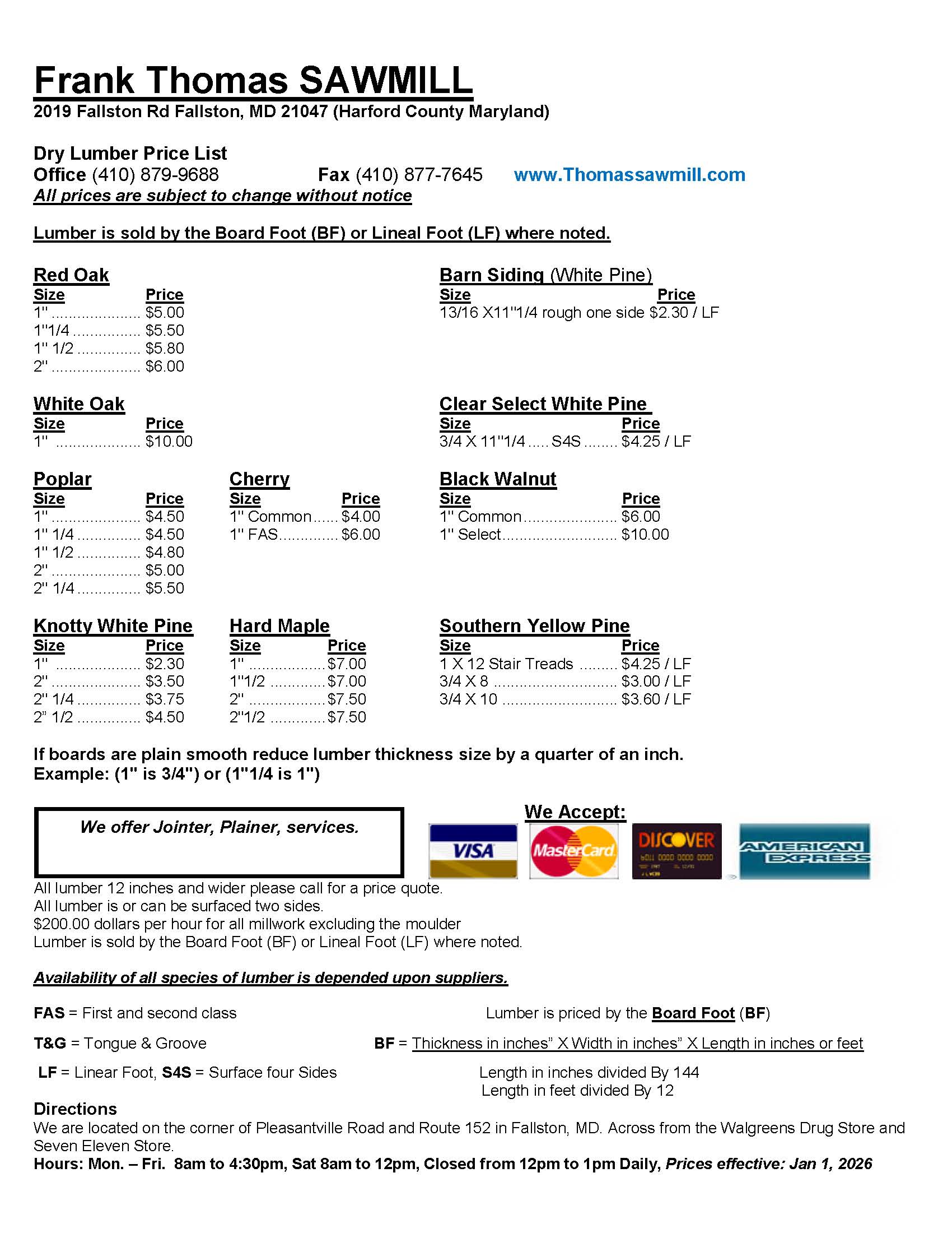 this website. All lumber over 10 inches wide please call for a price quote. All lumber is or can be surfaced two sides.